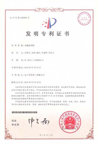 永磁起重機-專利發明證書
