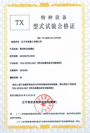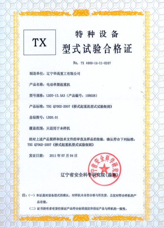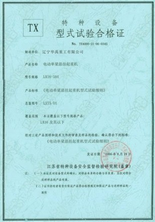 LDP電動單梁型式試驗合格證